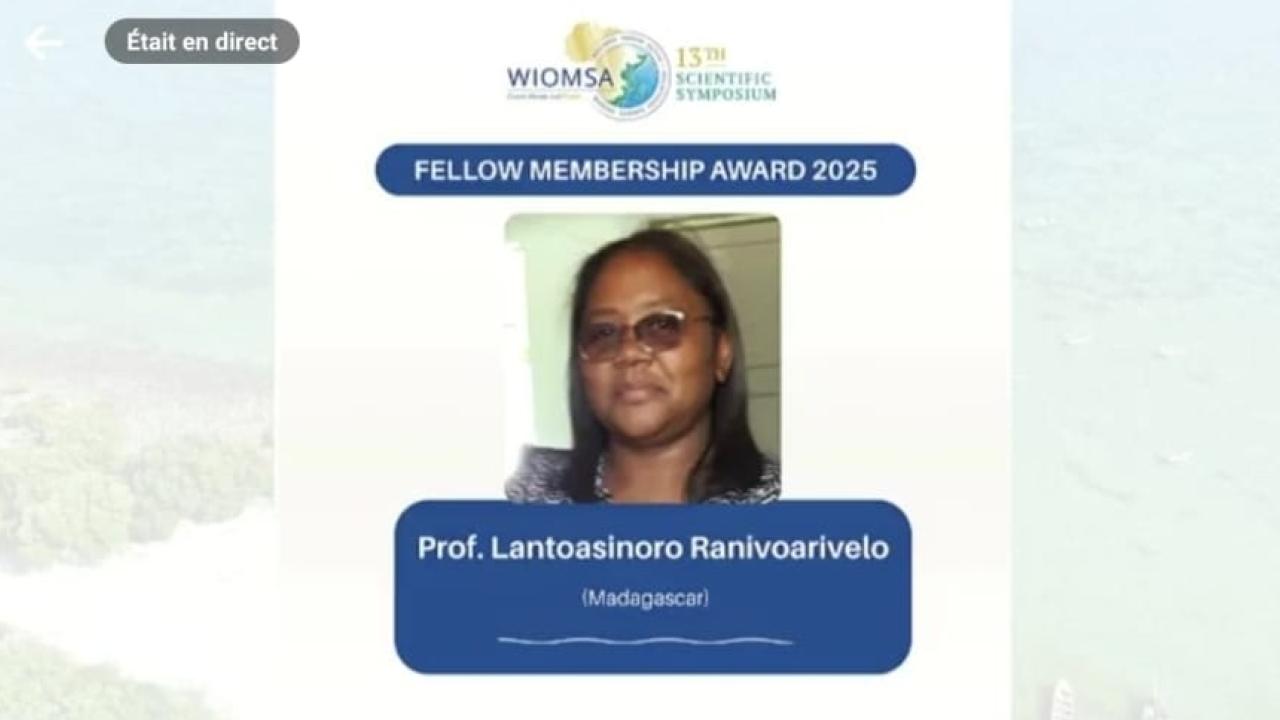 Prof. Lantoasinoro Ranivoarivelo, from the University of Toliara, in Madagascar, receives Fellow membership award 2025 at WIOMSA 13th Scientific Symposium.